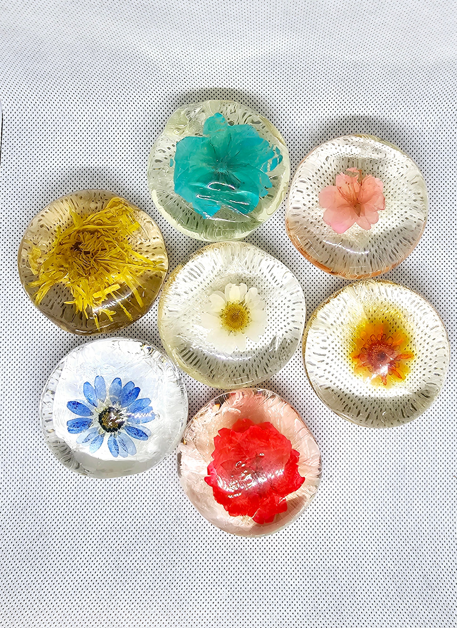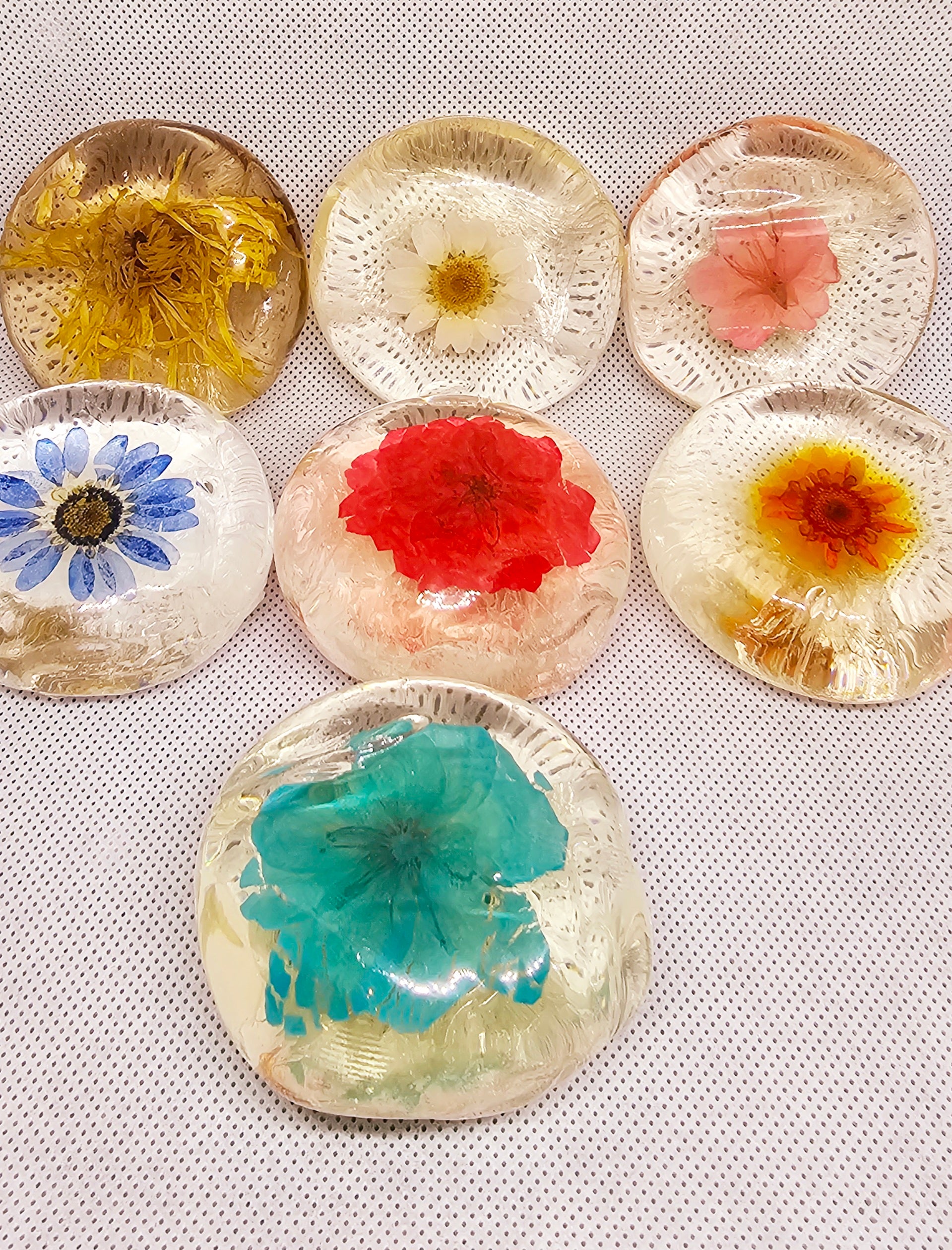 Featuring 7 different flowers. Red, golden, yellow, pink, blue, teal, and white.