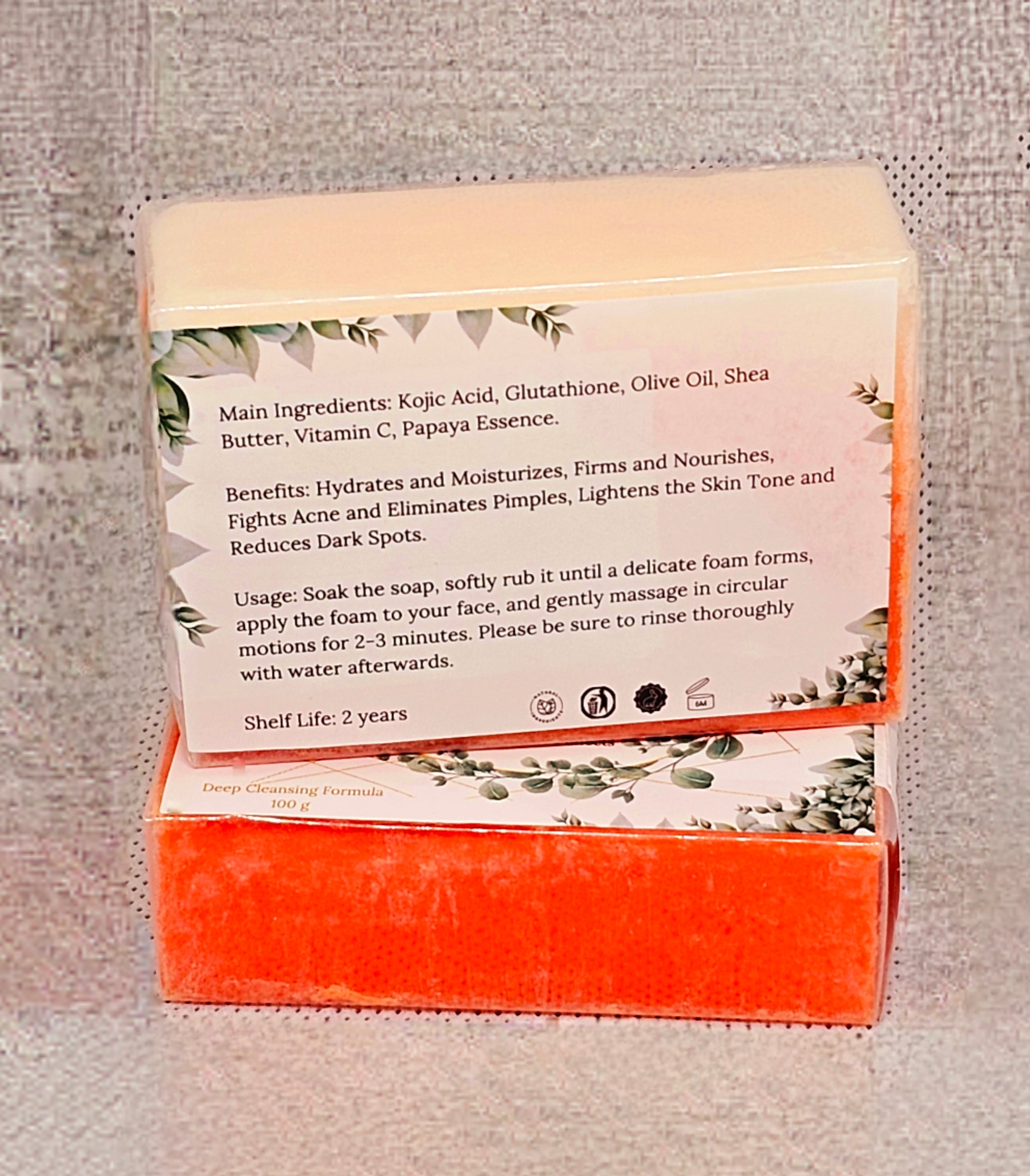 Our soap gently cleanses, leaving skin feeling refreshed and invigorated. The combination of Glutathione and Kojic Acid works harmoniously to reduce pigmentation and dullness, revealing a youthful, brightened skin appearance. It's more than a cleansing ritual; it's your ticket to beautiful, glowing skin.
